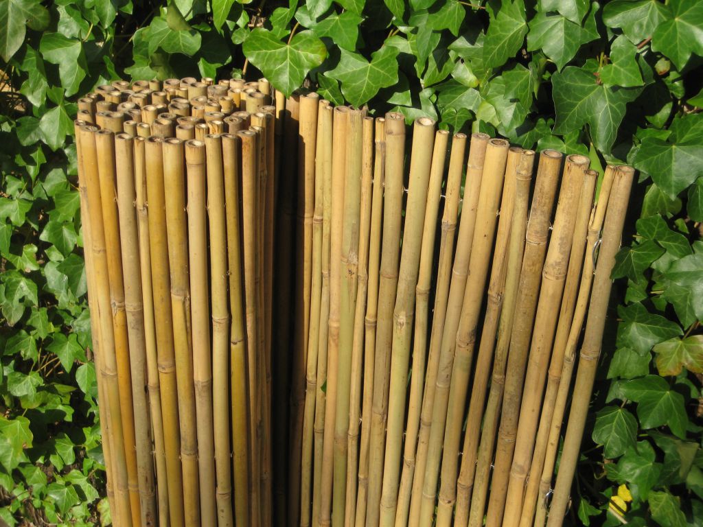 Bamboerolscherm gemaakt van circa 2 cm dikke bamboe stokken.