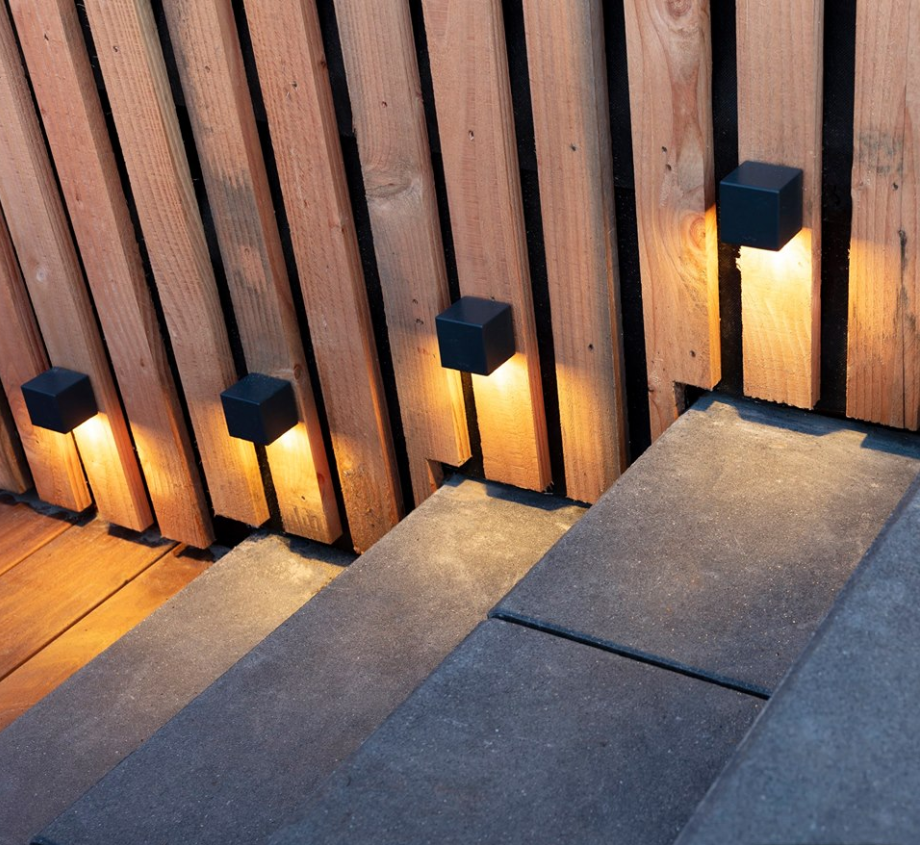 Subtiel kubusvormig wandarmatuur in warm zilver gecoat aluminium. Geeft een Warm White licht.CUBID is geschikt voor bijvoorbeeld vijverranden en pergola's.
